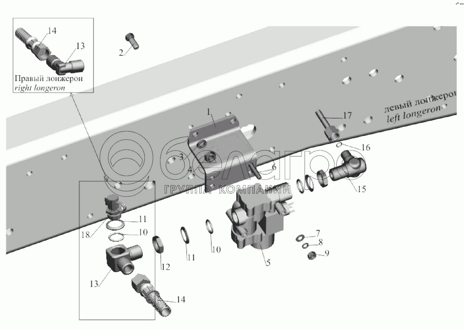 Каталог запасных частей к технике: МАЗ-651705. Установка передних модуляторов и присоединительной арматуры