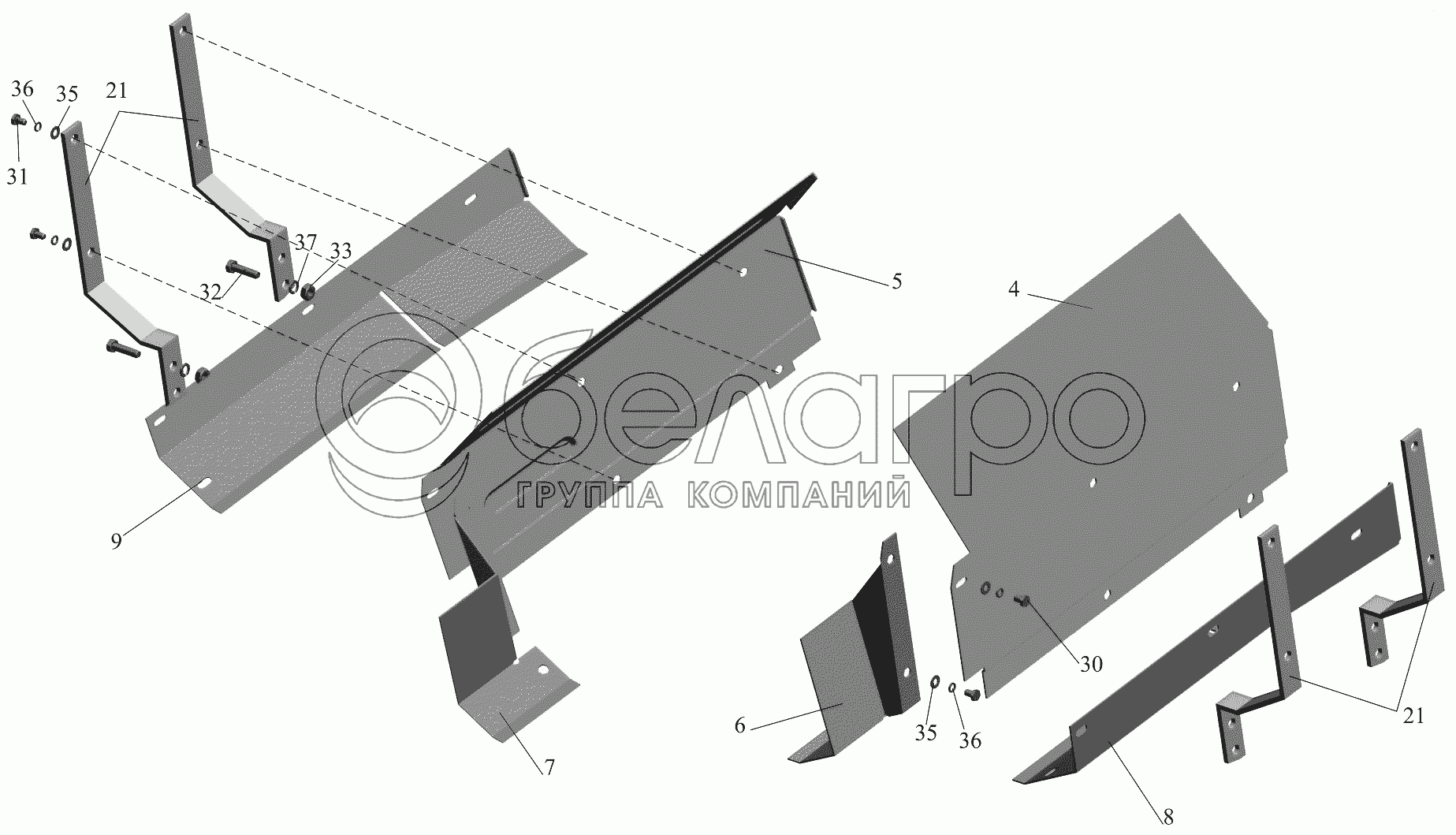Каталог запасных частей к технике: МАЗ-651705. Установка шумоизоляционных экранов 555102-1016003