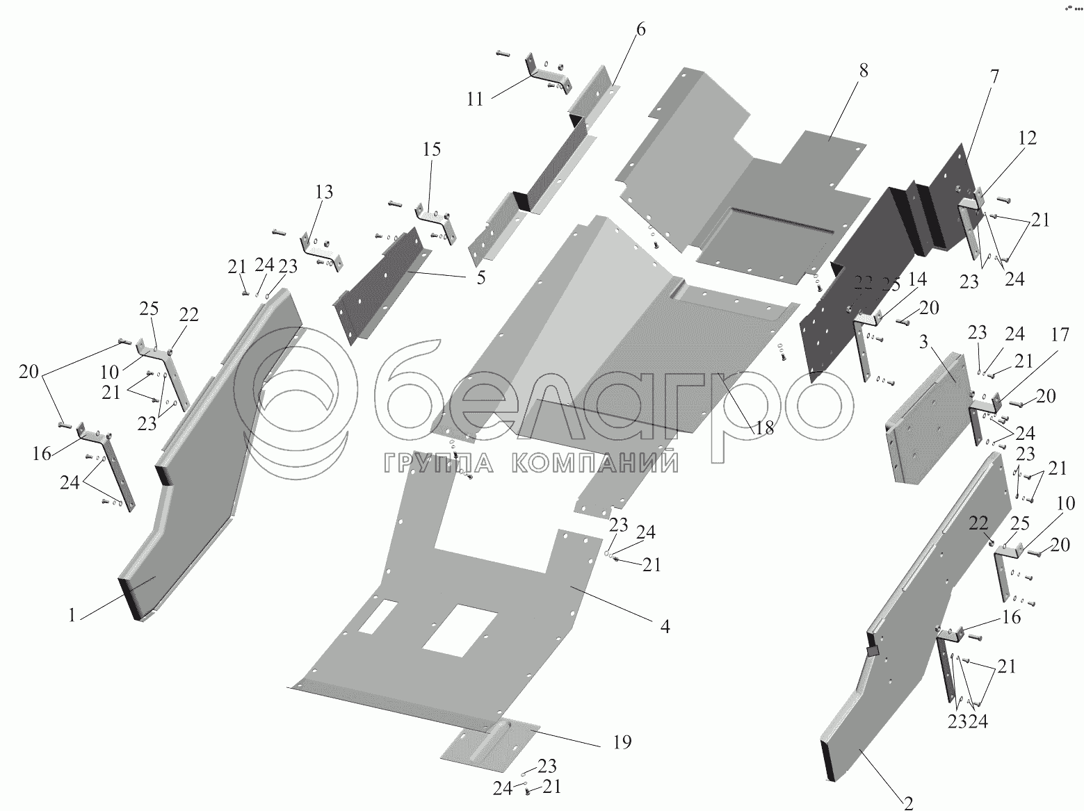 Каталог запасных частей к технике: МАЗ-651705. Установка шумоизоляционных экранов 631708-1061004