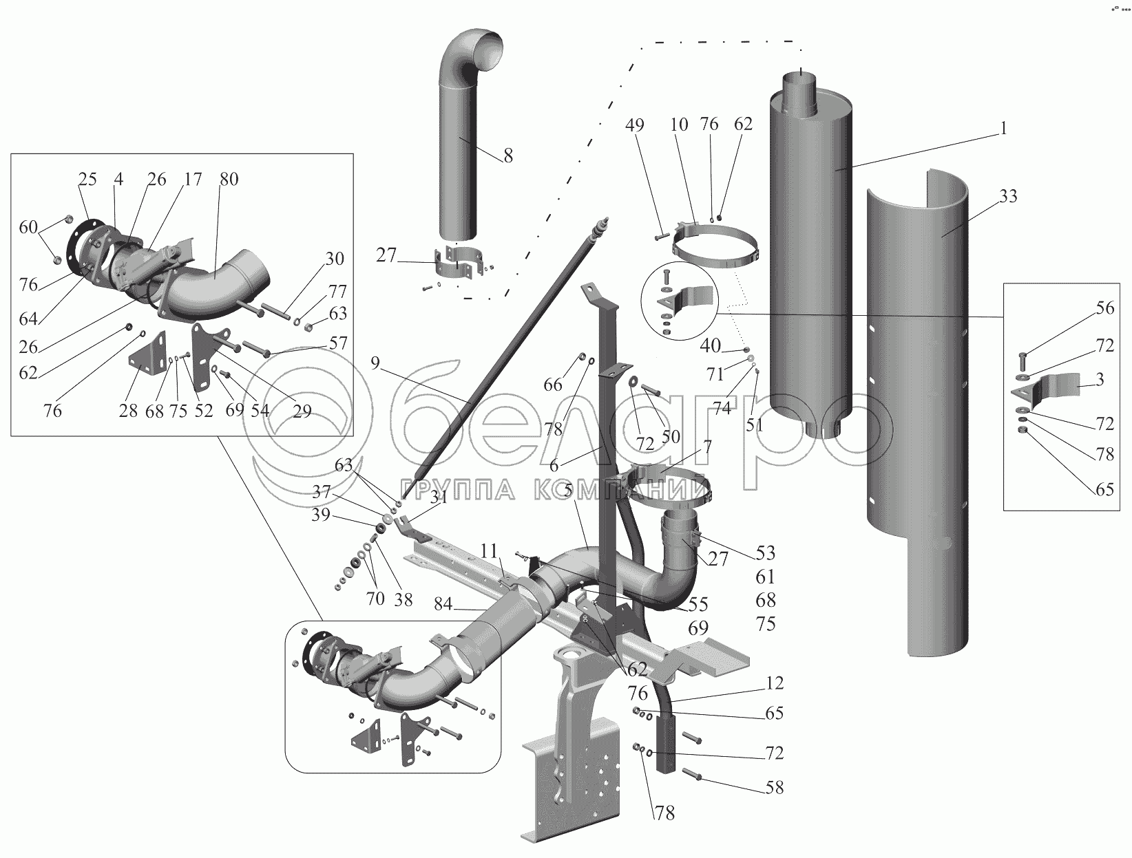 Каталог запасных частей к технике: МАЗ-651705. Установка системы выпуска 651705-1200001-010