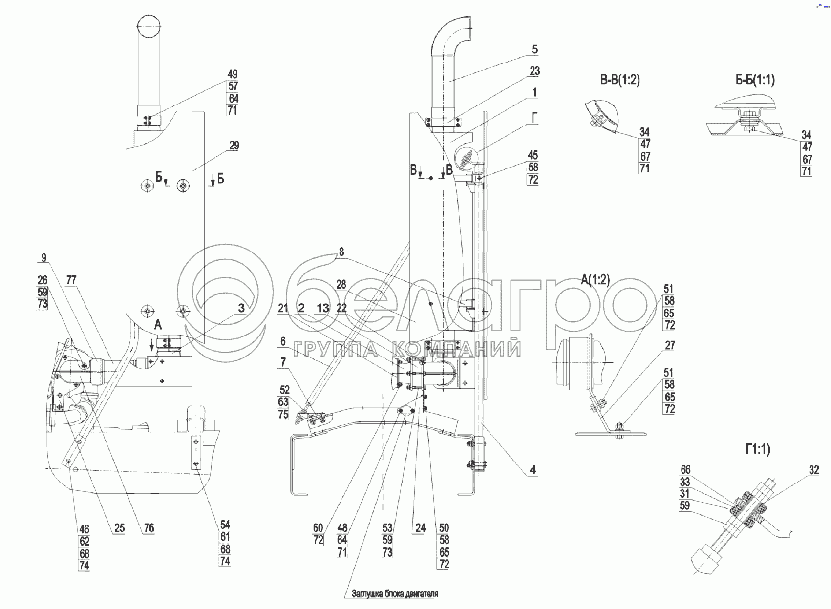 Каталог запасных частей к технике: МАЗ-651705. Установка системы выпуска 651705-1200001-035