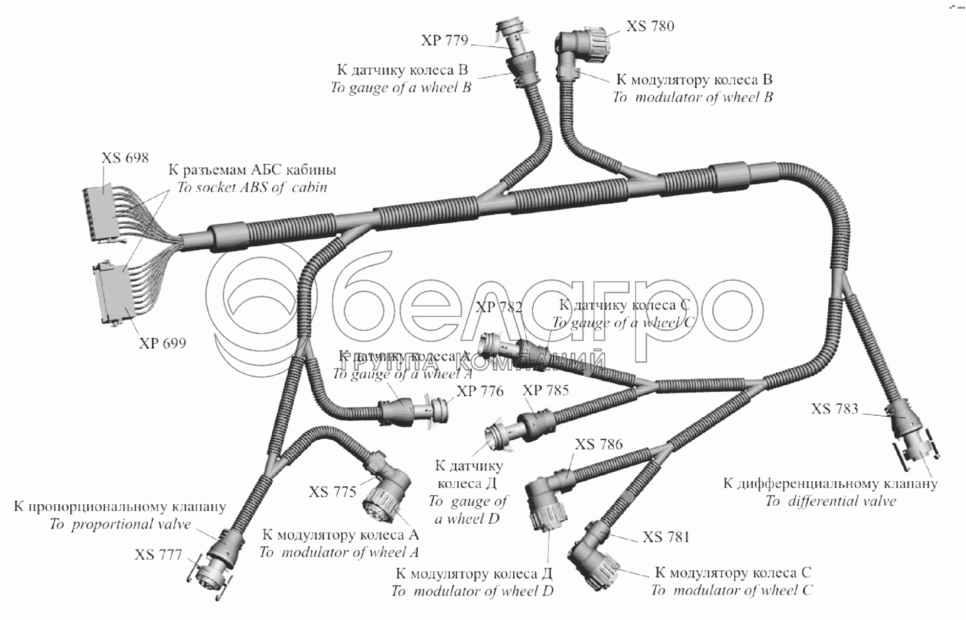 Каталог запасных частей к технике: МАЗ-651705. Жгут АБС по шасси 630308-3724760-010