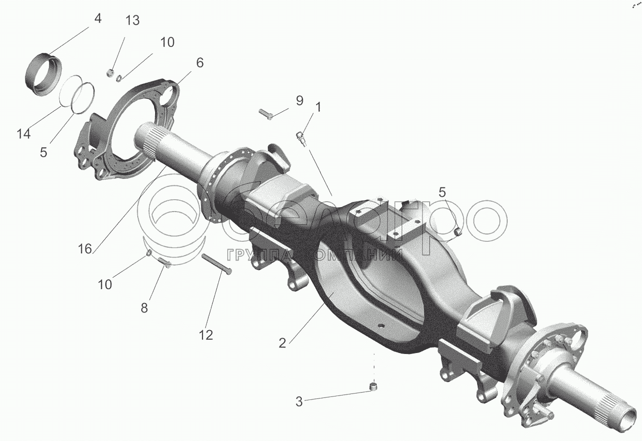 Каталог запасных частей к технике: МАЗ-6517X9-0000410. Картер моста 64221-2501010-030