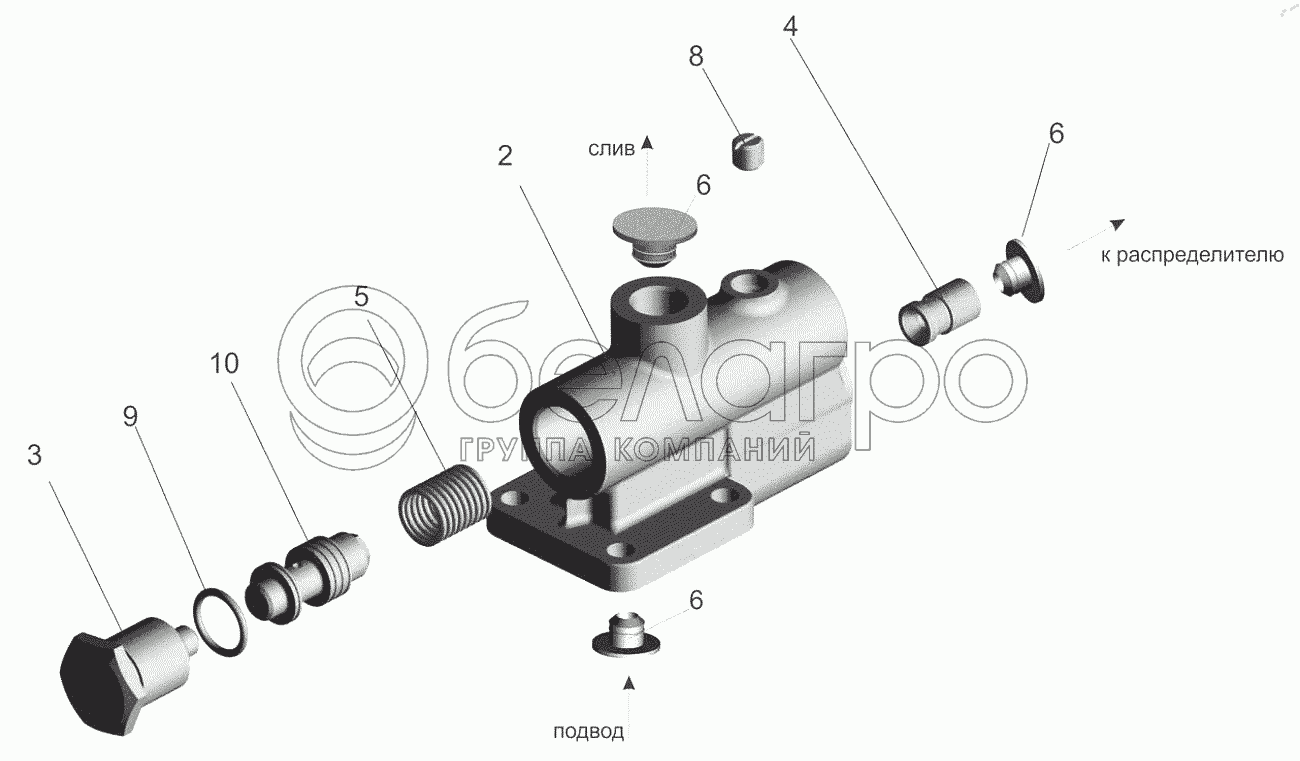 Каталог запасных частей к технике: МАЗ-6517X9-0000410. Клапан расхода 6418-3407260