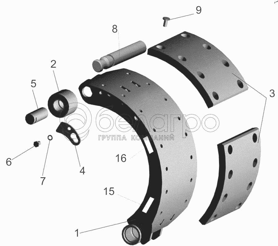 Каталог запасных частей к технике: МАЗ-6517X9-0000410. Колодка тормозная