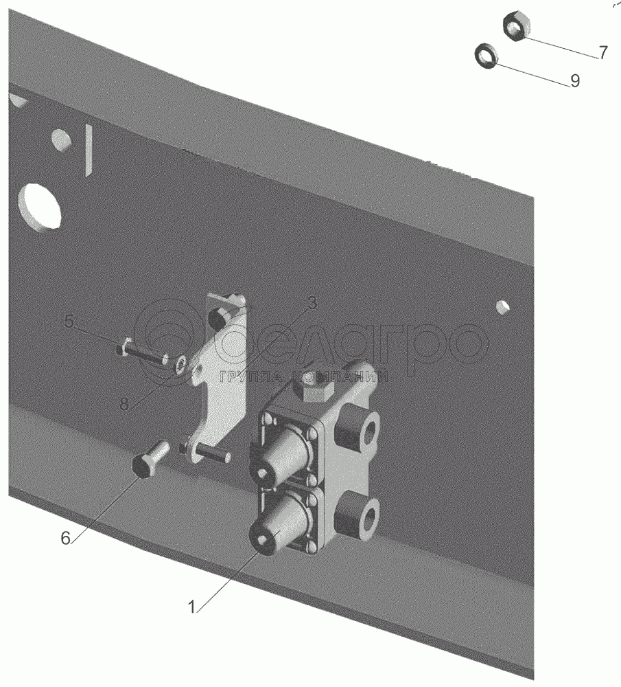 Каталог запасных частей к технике: МАЗ-6517X9-0000410. Крепление четырехконтурного клапана 5516-3515002