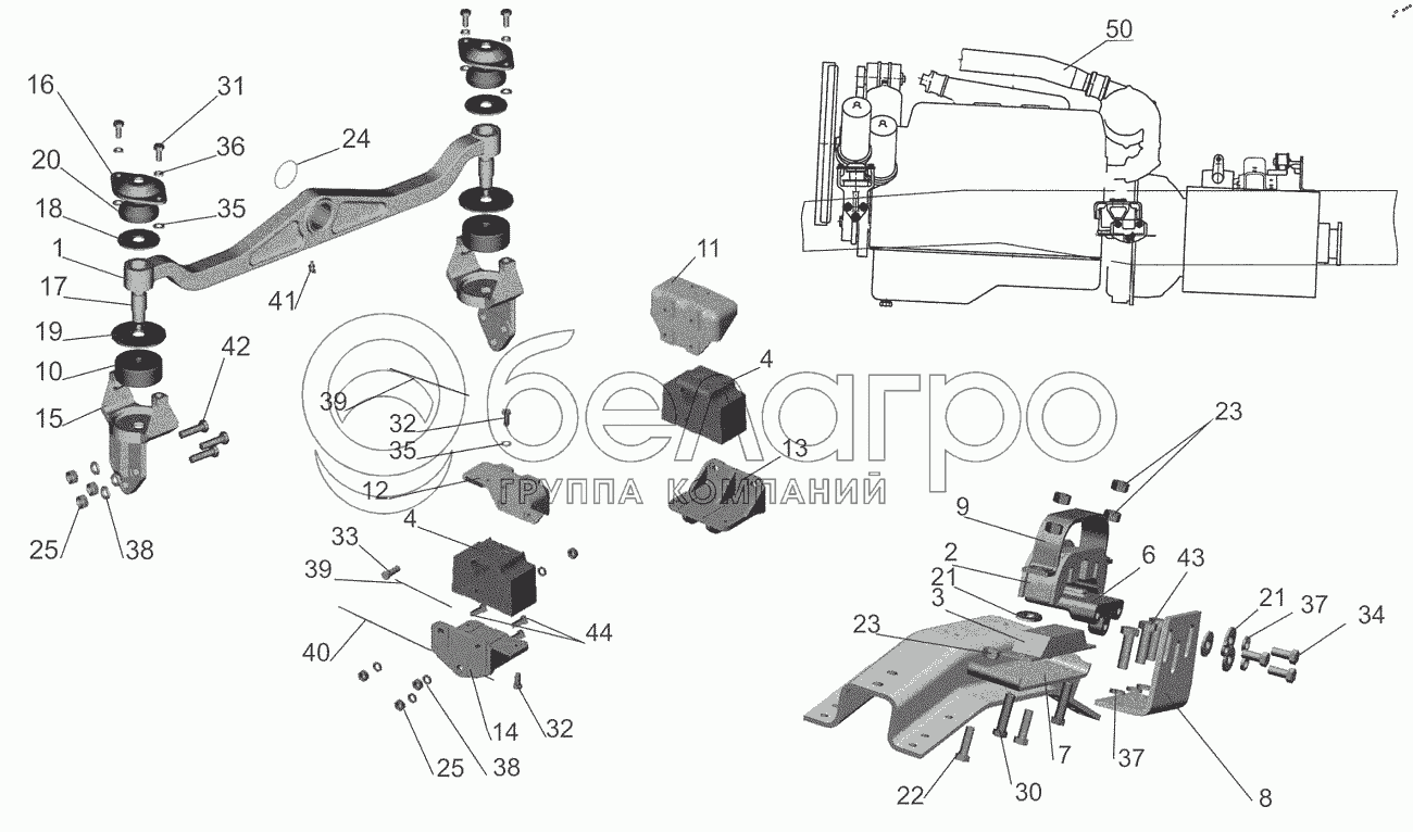 Каталог запасных частей к технике: МАЗ-6517X9-0000410. Крепление двигателя 6517X9-1001002-000