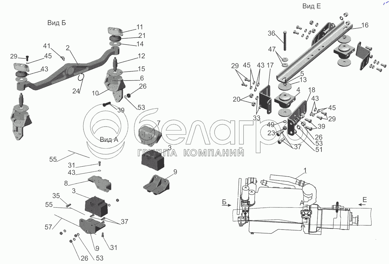 Каталог запасных частей к технике: МАЗ-6517X9-0000410. Крепление двигателя 6517X9-1001002-020