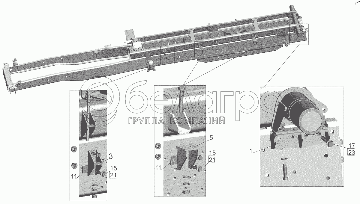 Каталог запасных частей к технике: МАЗ-6517X9-0000410. Крепление кронштейнов 651705-8600060-000