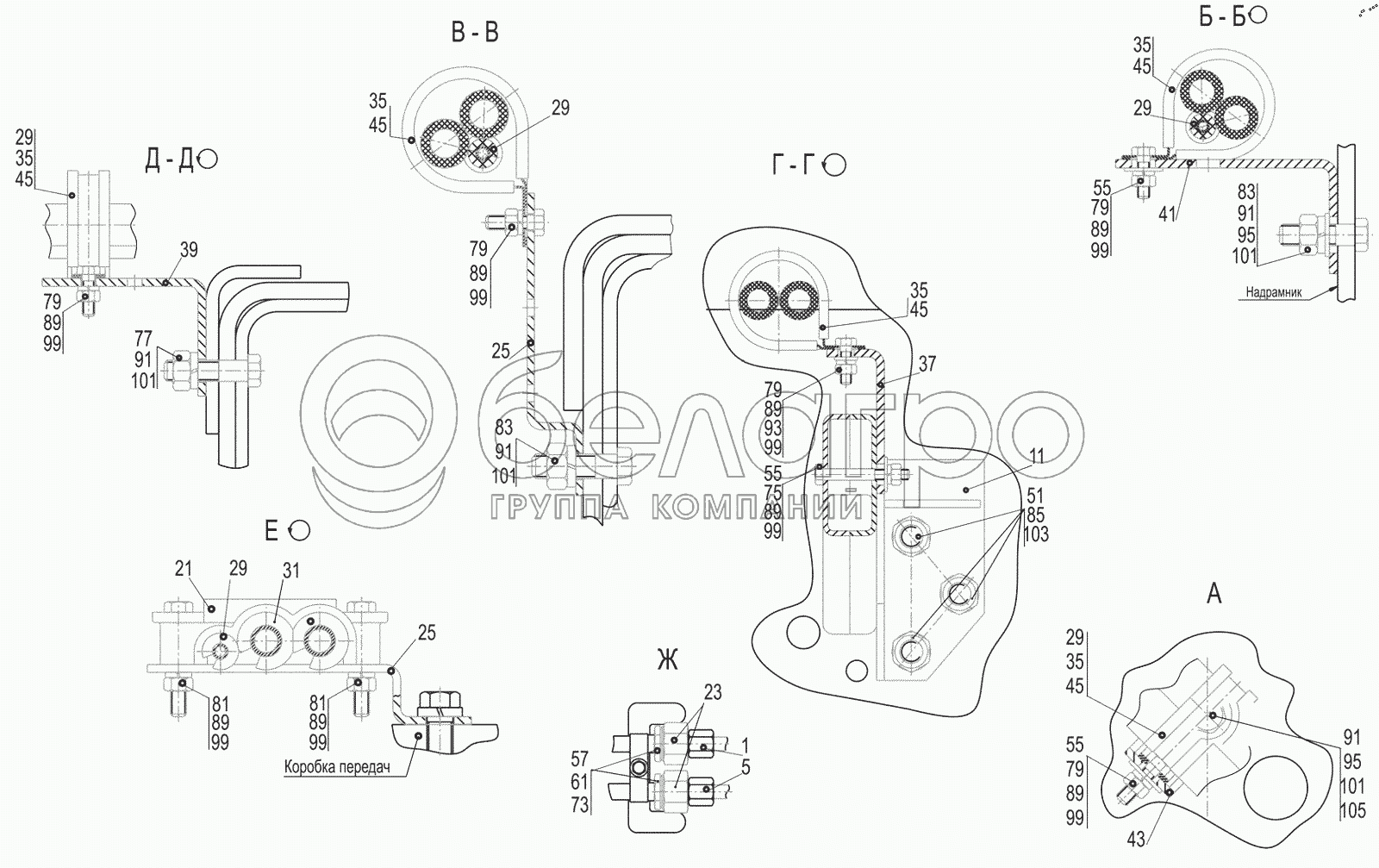 Каталог запасных частей к технике: МАЗ-6517X9-0000410. Крепление топливопроводов 6517X9-1104002-030