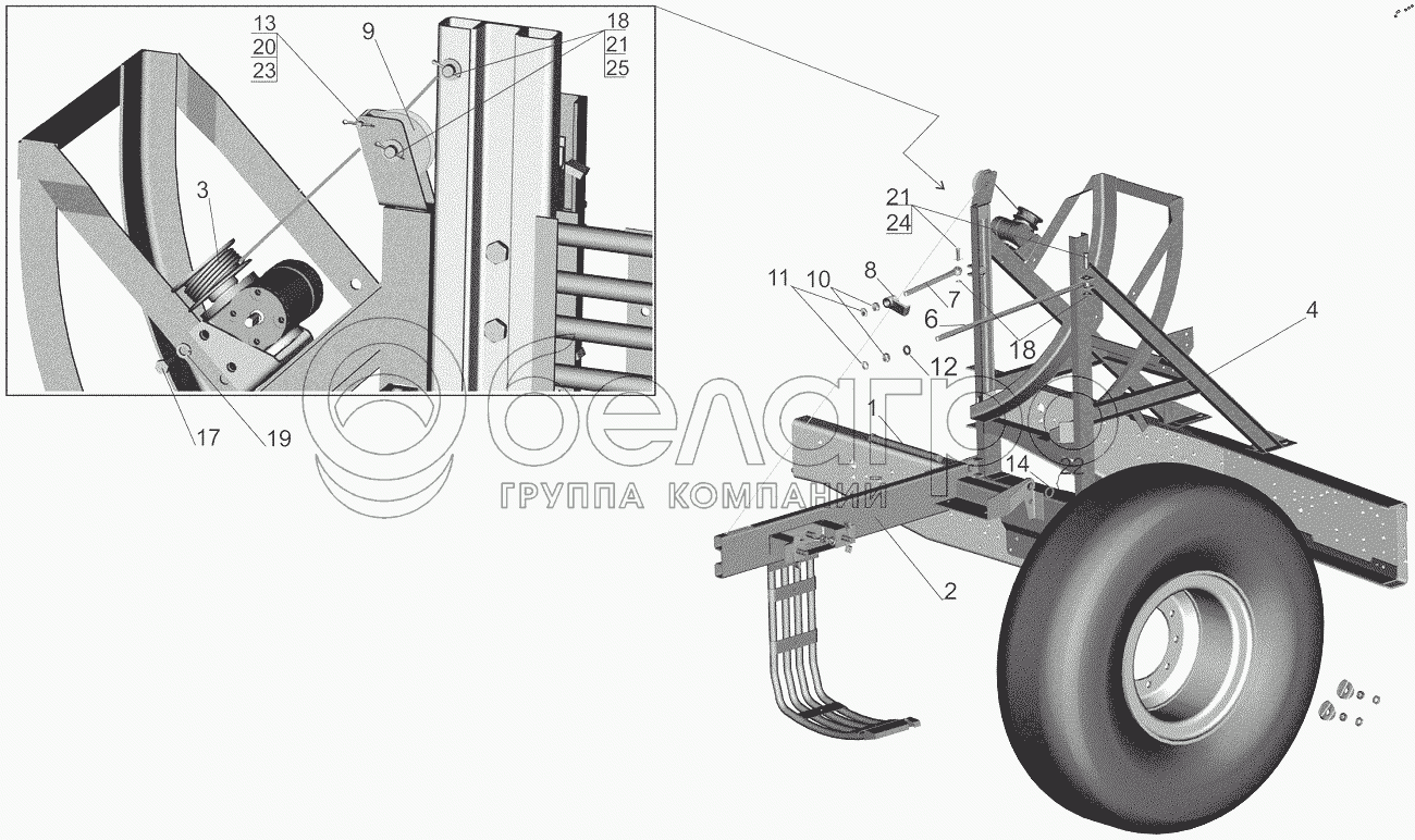 Каталог запасных частей к технике: МАЗ-6517X9-0000410. Крепление запасного колеса 631705-3105008