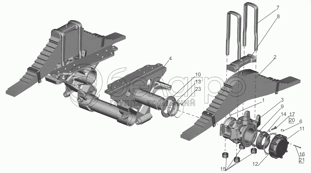 Каталог запасных частей к технике: МАЗ-6517X9-0000410. Подвеска балансирная 551605-2900012-060