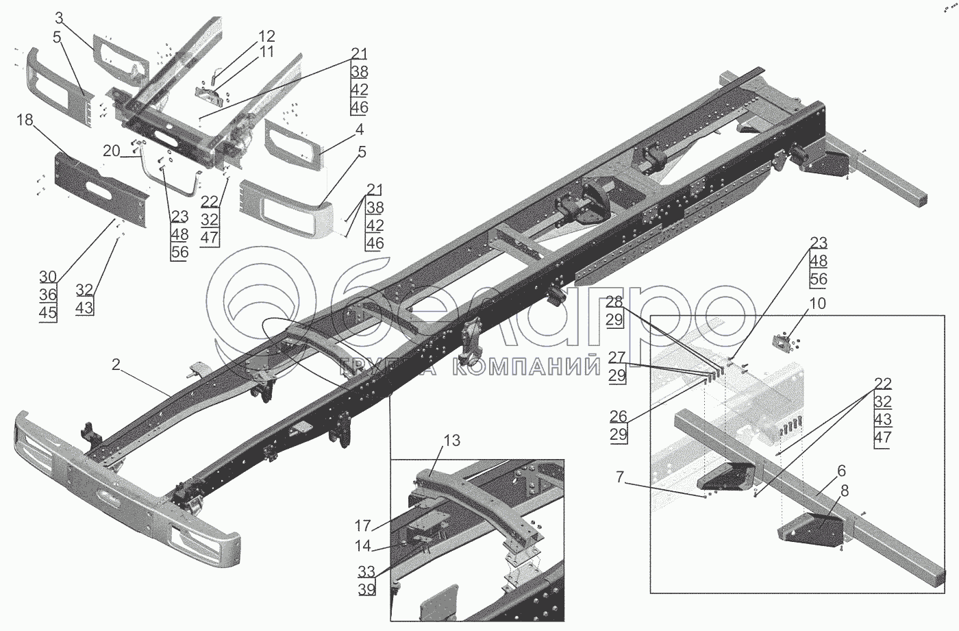 Каталог запасных частей к технике: МАЗ-6517X9-0000410. Рама 651705-2800010-050