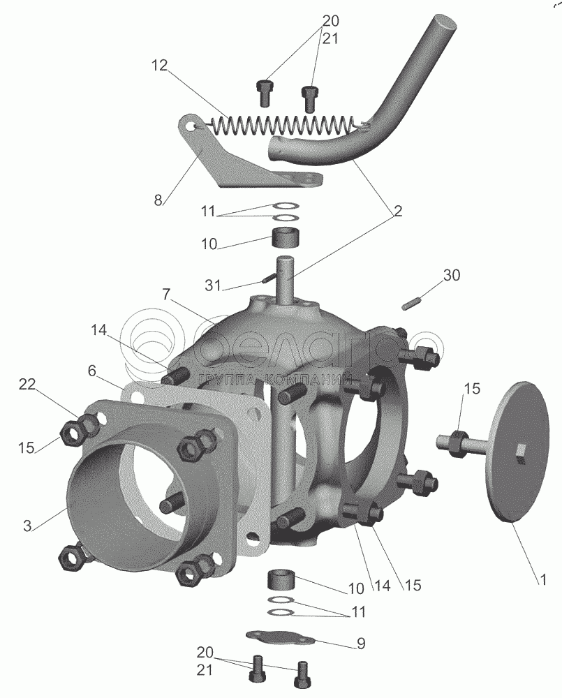 Каталог запасных частей к технике: МАЗ-6517X9-0000410. Распределитель 6501А8-1203240