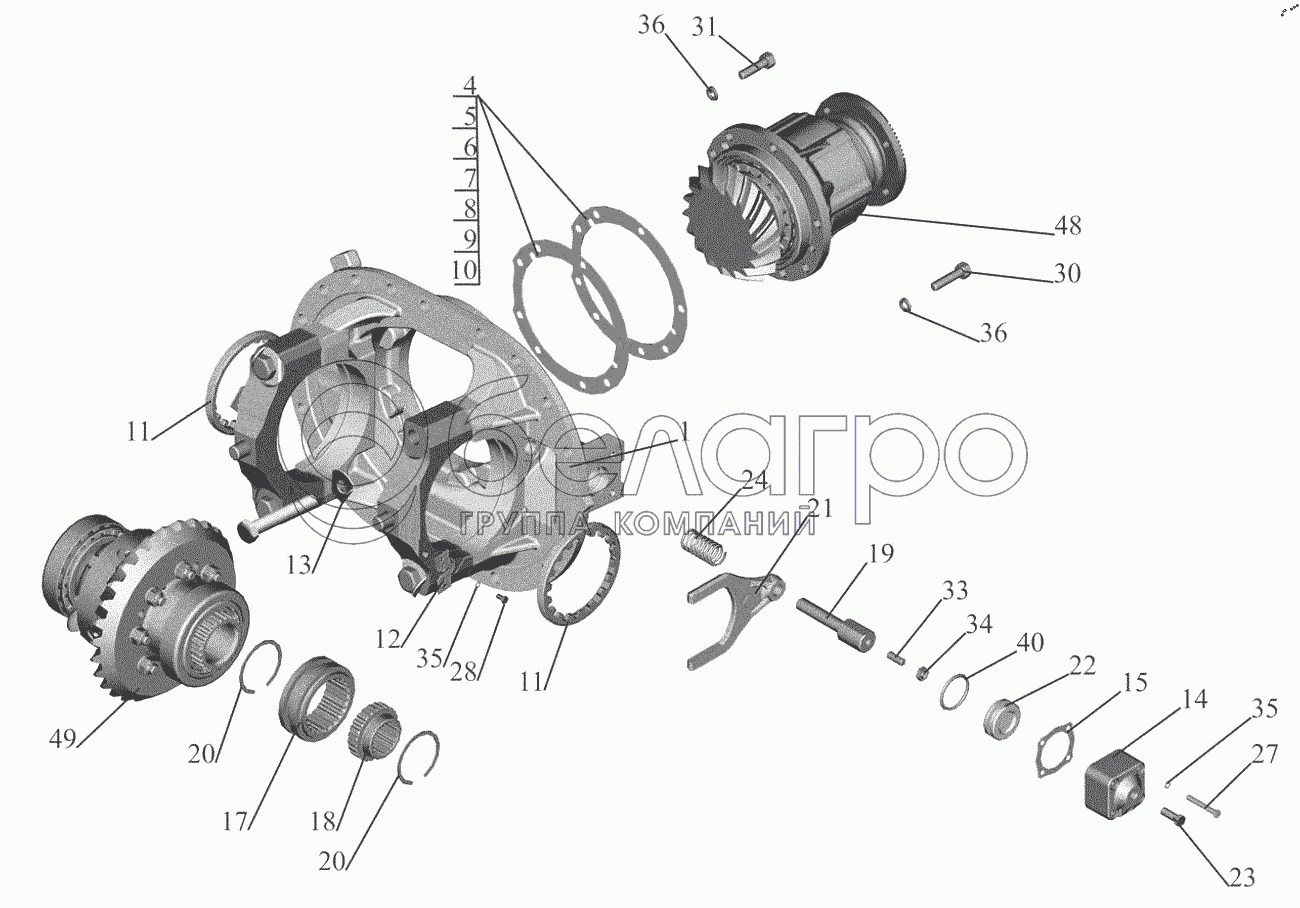 Каталог запасных частей к технике: МАЗ-6517X9-0000410. Редуктор