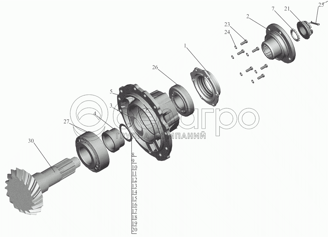 Каталог запасных частей к технике: МАЗ-6517X9-0000410. Шестерня ведущая