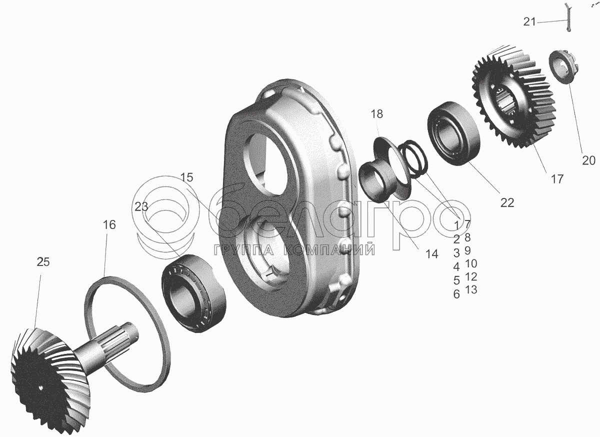 Каталог запасных частей к технике: МАЗ-6517X9-0000410. Шестерня ведущая