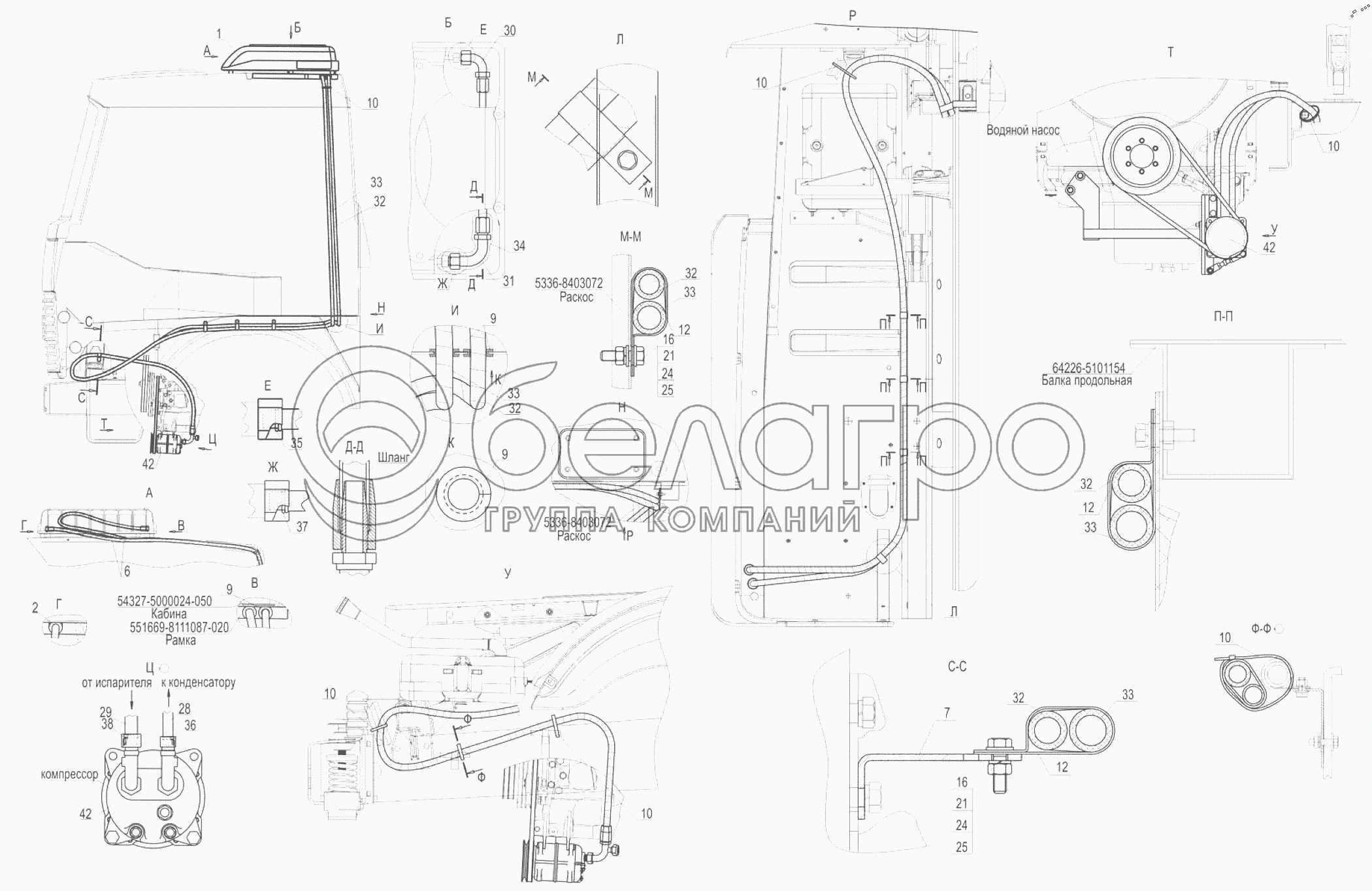 Каталог запасных частей к технике: МАЗ-6517X9-0000410. Установка кондиционера 642208-8100004-000