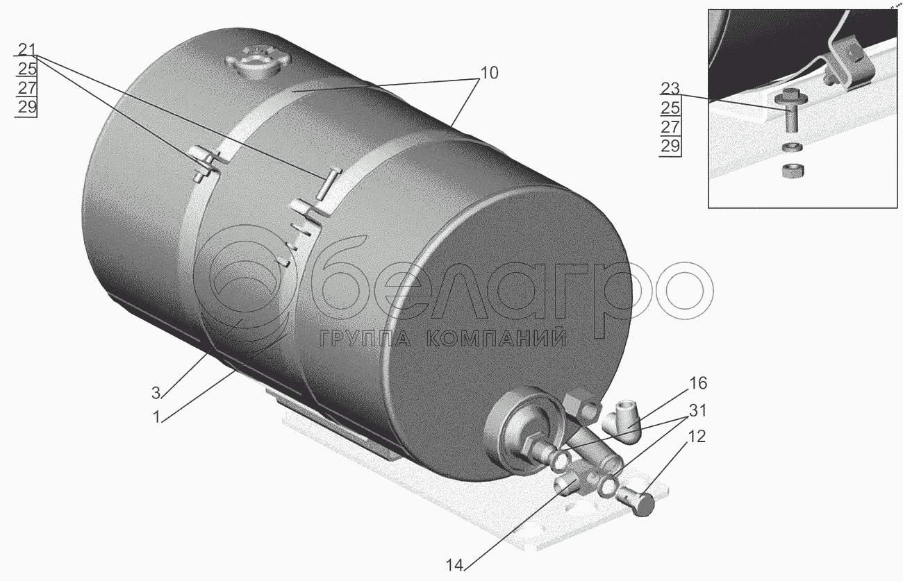 Каталог запасных частей к технике: МАЗ-6517X9-0000410. Установка масляного бака 651705-8600034