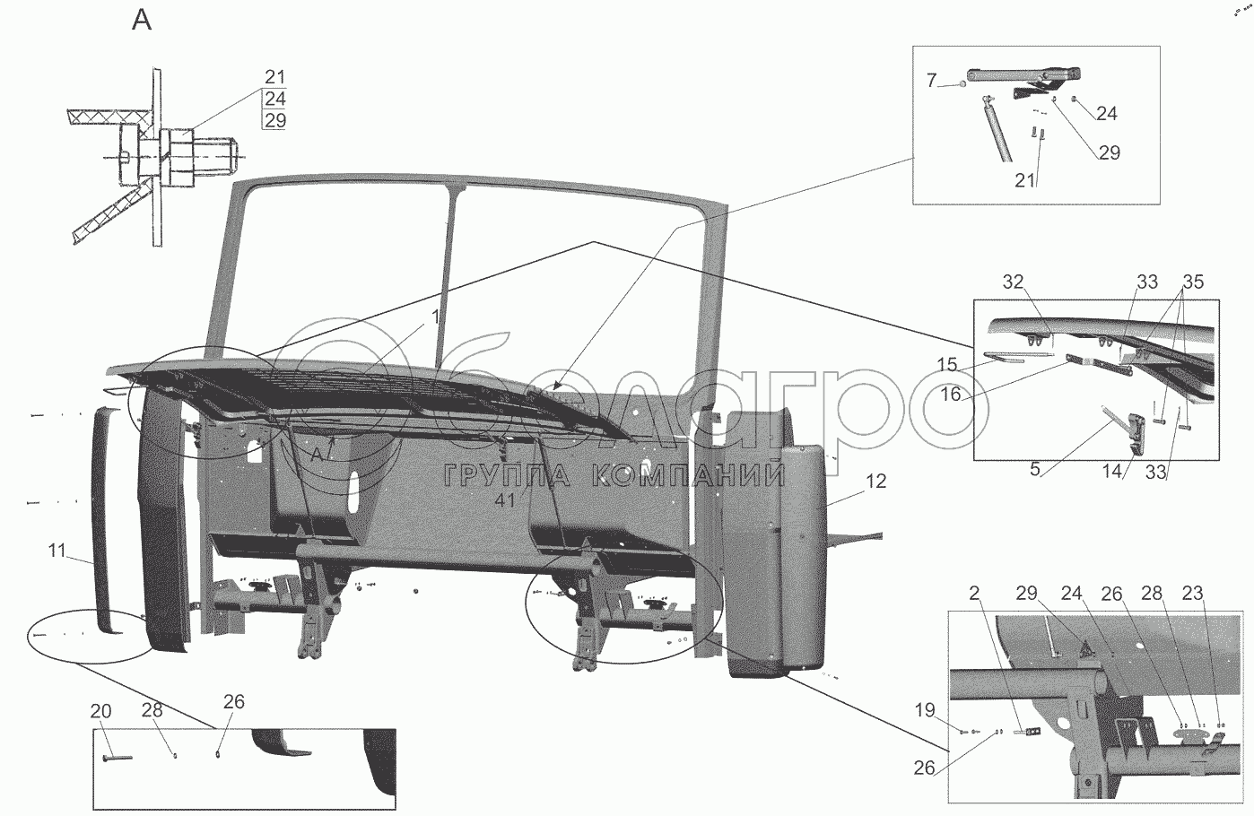 Каталог запасных частей к технике: МАЗ-6517X9-0000410. Установка облицовки передка 64221-8400018