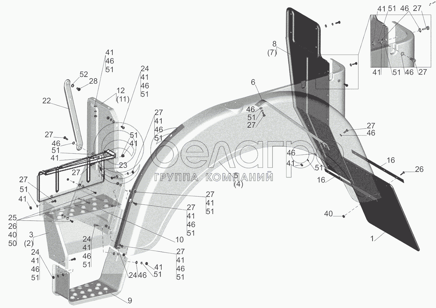 Каталог запасных частей к технике: МАЗ-6517X9-0000410. Установка оперения 642508-8400020