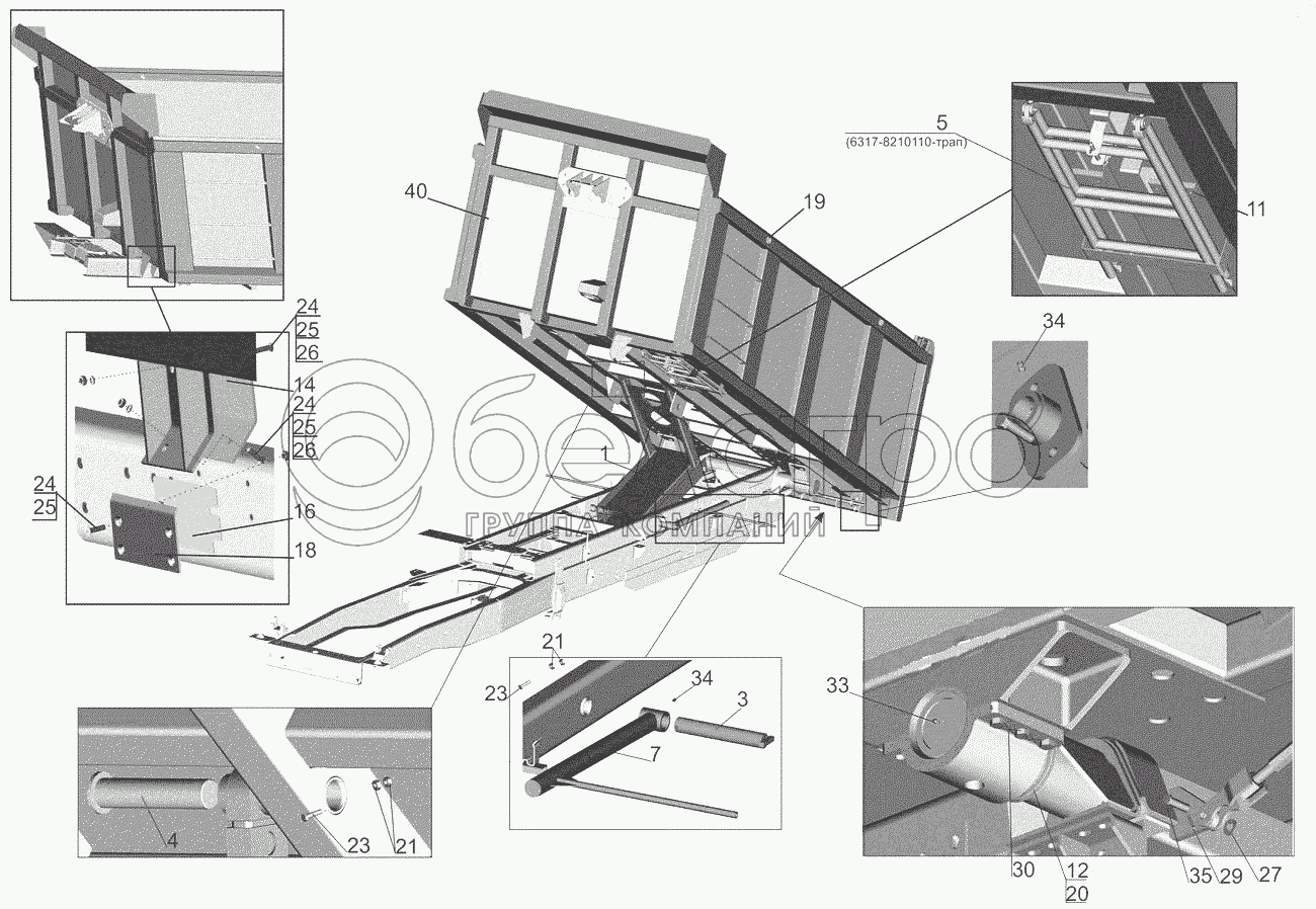 Каталог запасных частей к технике: МАЗ-6517X9-0000410. Установка платформы