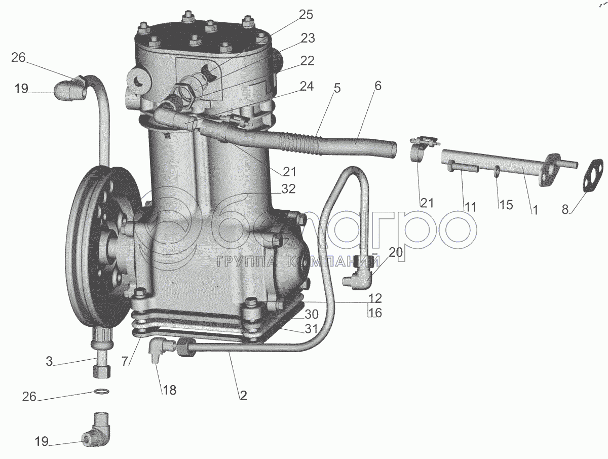 Каталог запасных частей к технике: МАЗ-6517X9-0000410. Установка пневмокомпрессора 642208-3500014