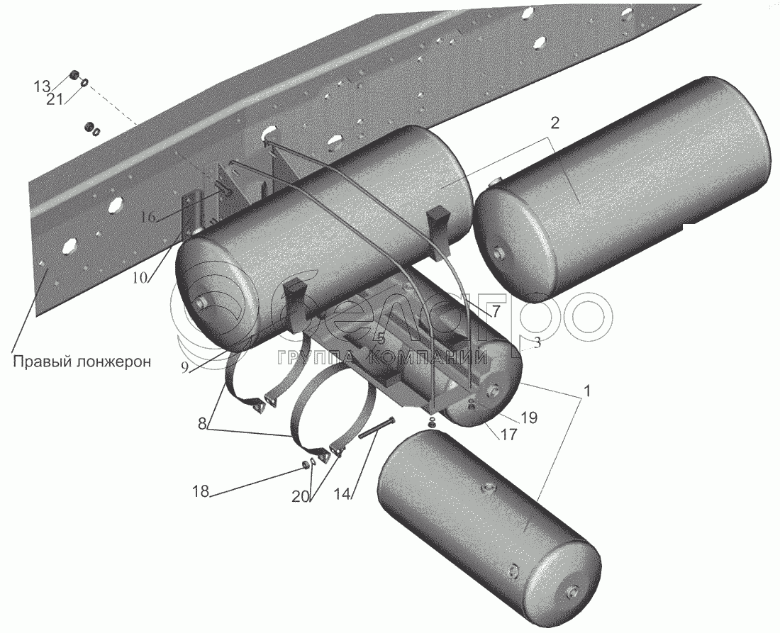 Каталог запасных частей к технике: МАЗ-6517X9-0000410. Установка ресиверов 551605-3513004