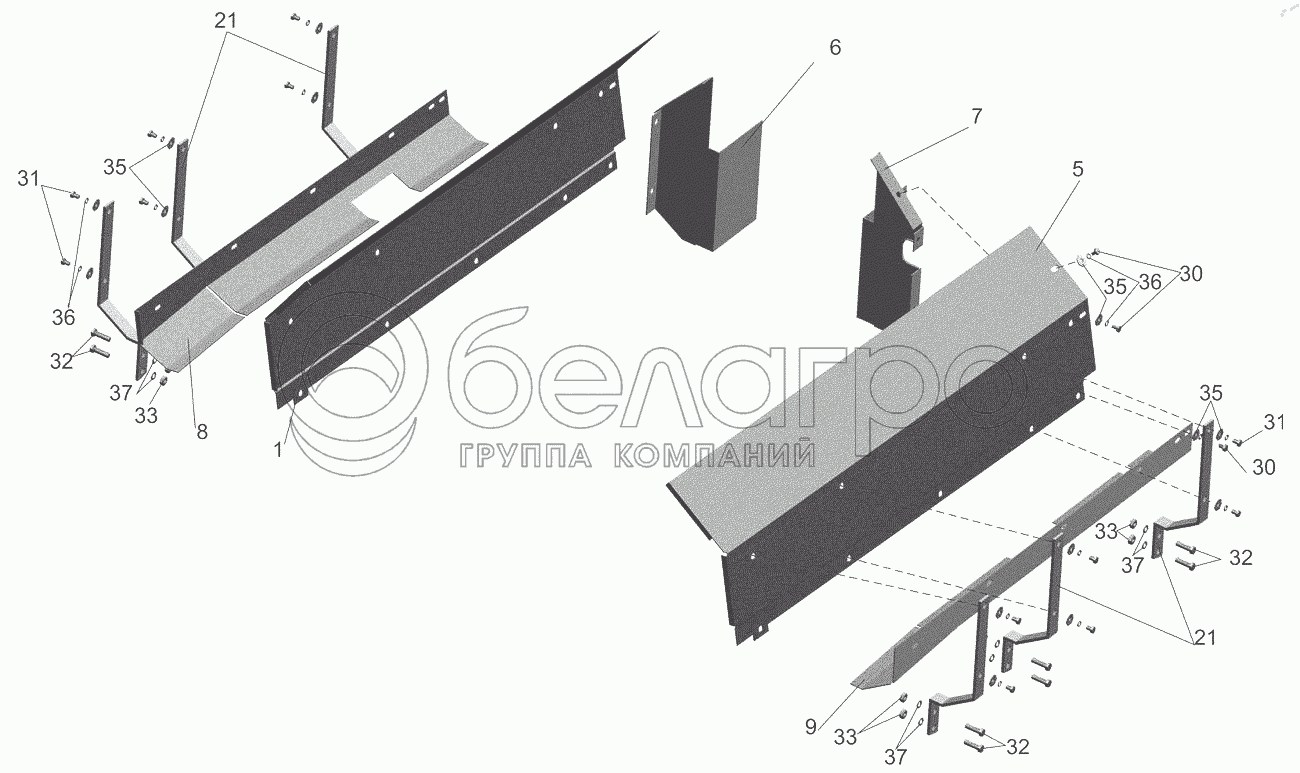 Каталог запасных частей к технике: МАЗ-6517X9-0000410. Установка шумоизоляционных экранов 642208-1061003