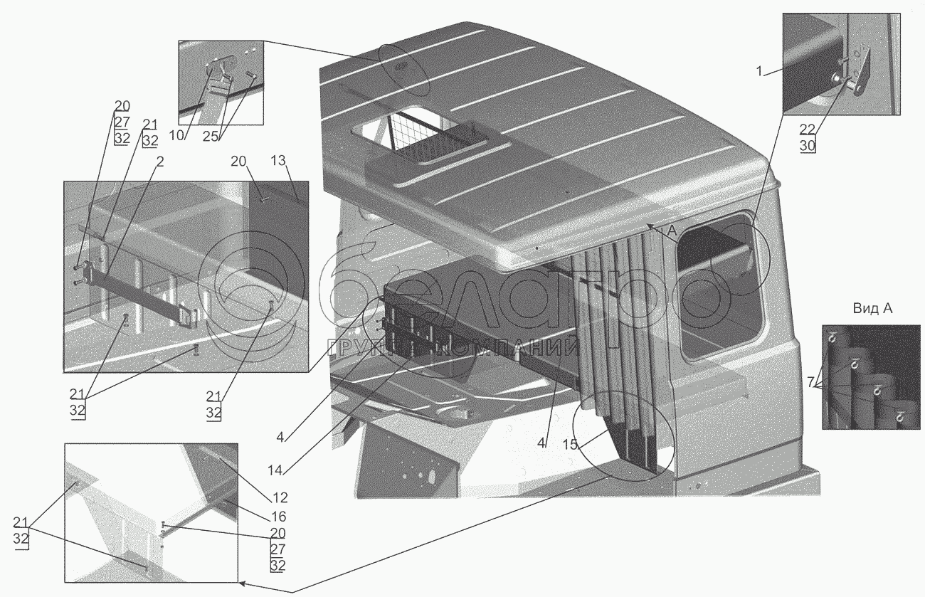 Каталог запасных частей к технике: МАЗ-6517X9-0000410. Установка спальных мест 64221-8200010