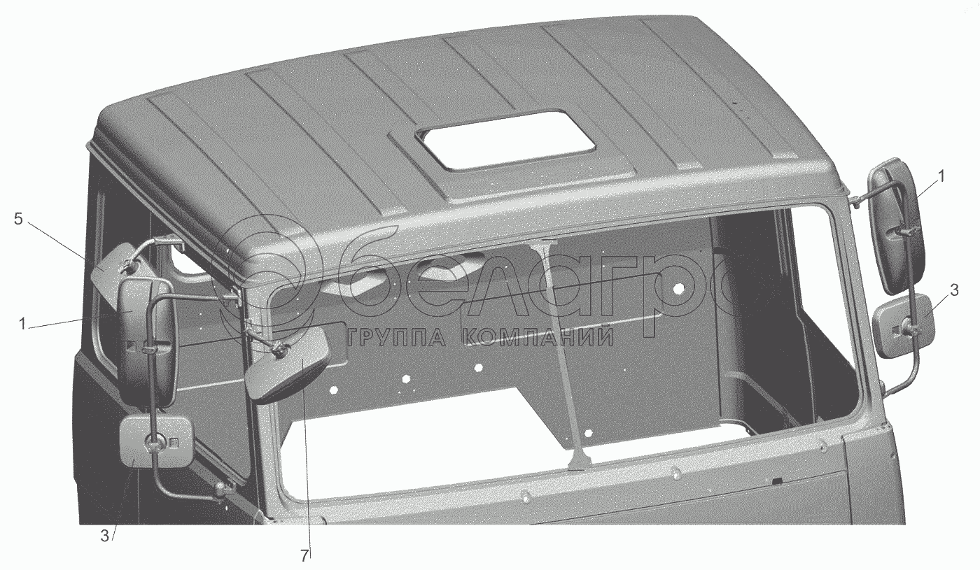 Каталог запасных частей к технике: МАЗ-6517X9-0000410. Установка зеркал 54327-8200005-010