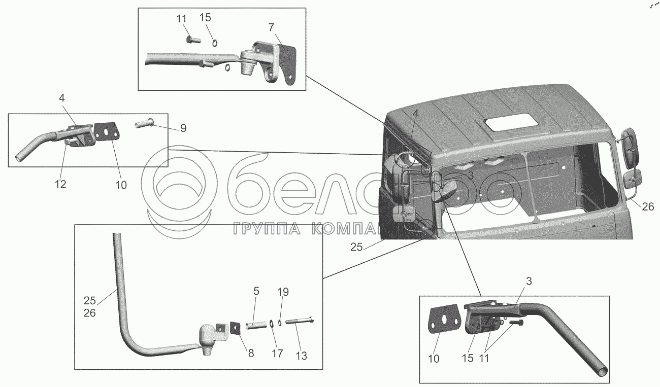 Каталог запасных частей к технике: МАЗ-6517X9-0000410. Установка зеркалодержателей