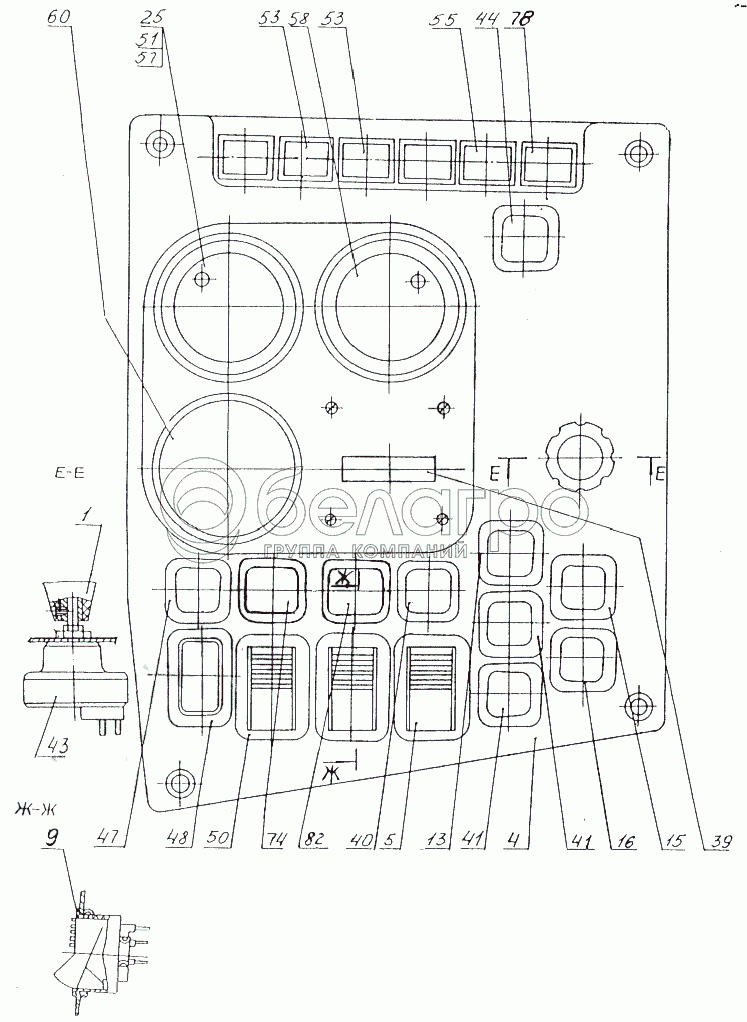 Каталог запасных частей к технике: МАЗ-74131. Панель приборов освещения