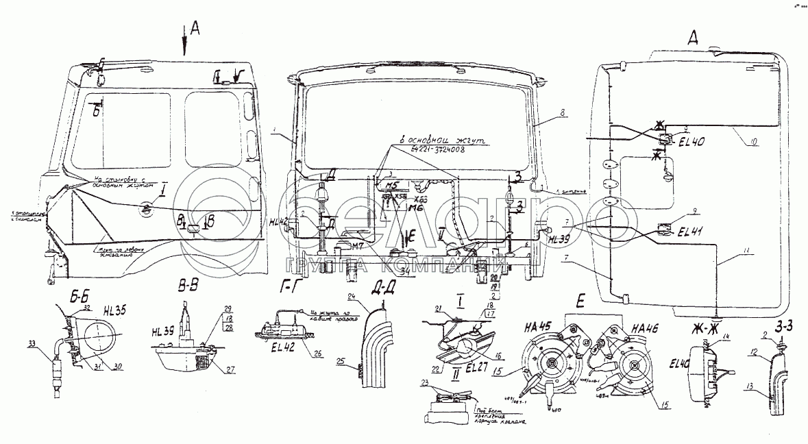 Каталог запасных частей к технике: МАЗ-74131. Установка электрооборудования на кабине