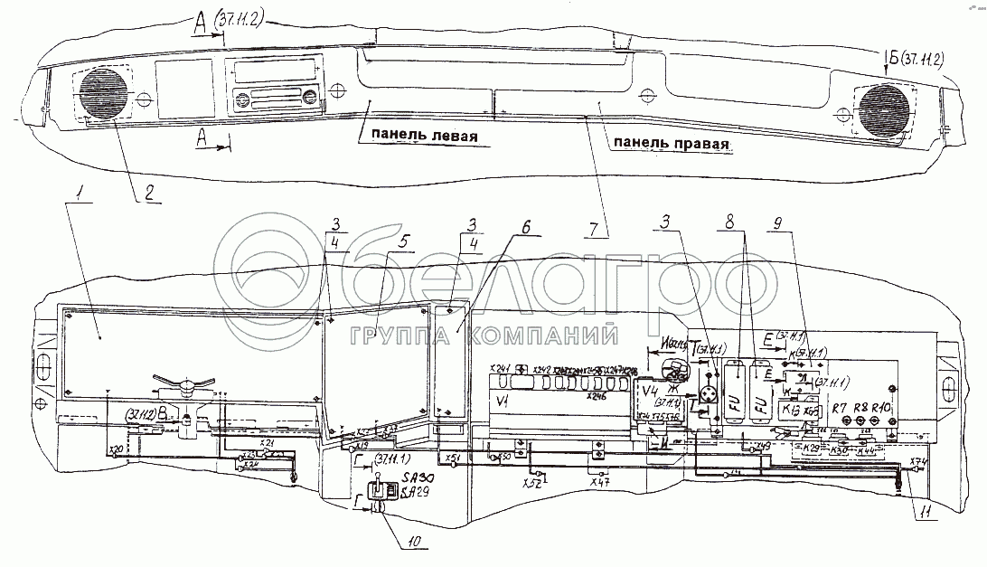 Каталог запасных частей к технике: МАЗ-74131. Установка электрооборудования в кабине