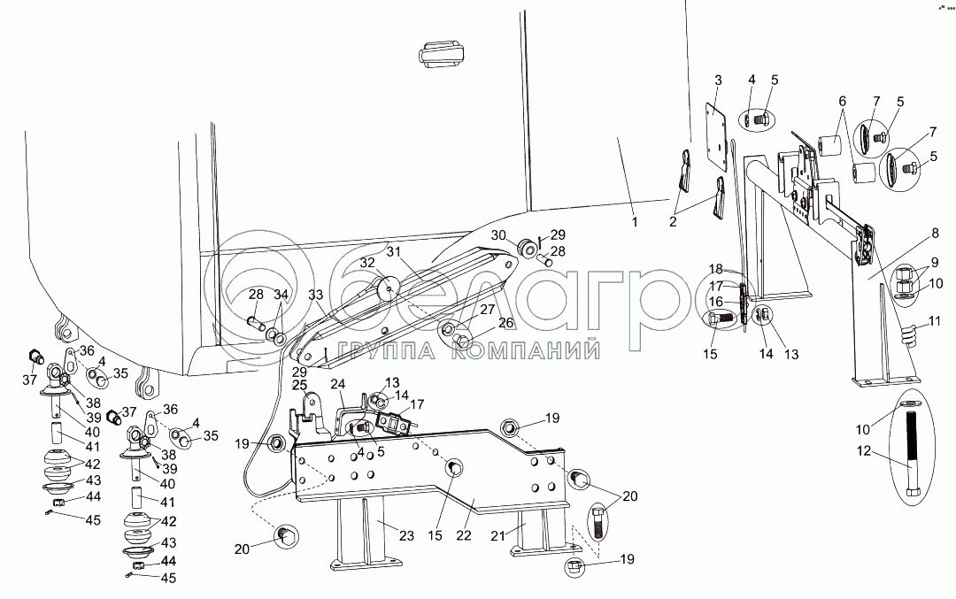 Каталог запасных частей к технике: МАЗ-74131. Установка кабины