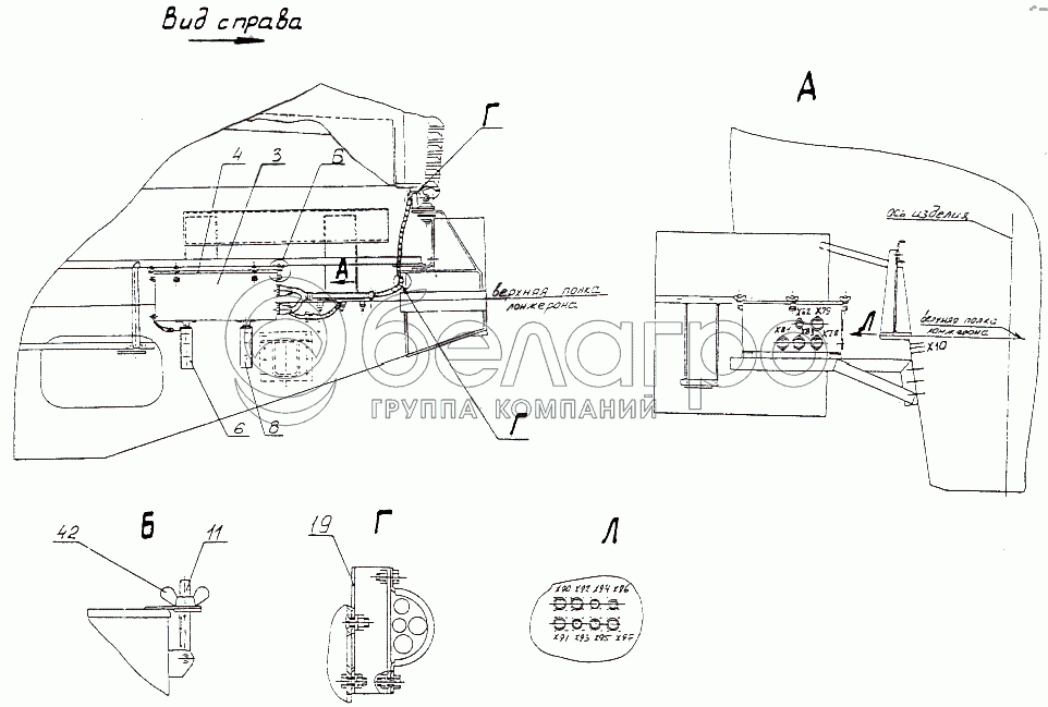 Каталог запасных частей к технике: МАЗ-74131. Установка отсека коммутационной аппаратуры