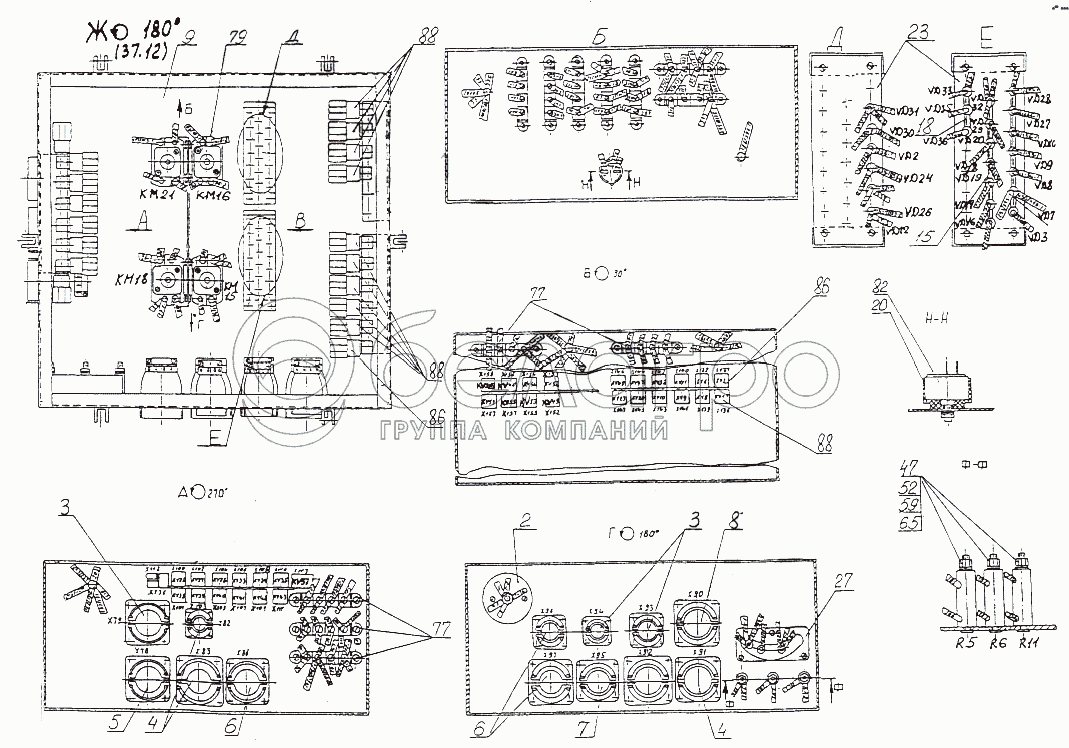 Каталог запасных частей к технике: МАЗ-74131. Установка отсека коммутационной аппаратуры