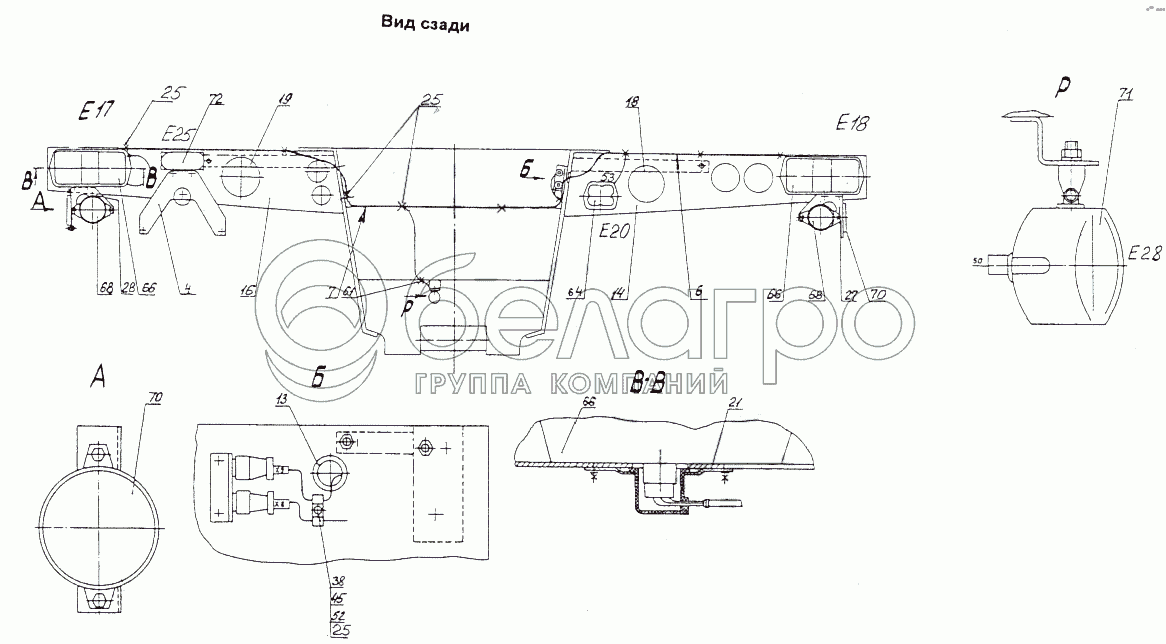 Каталог запасных частей к технике: МАЗ-74131. Установка задних фонарей