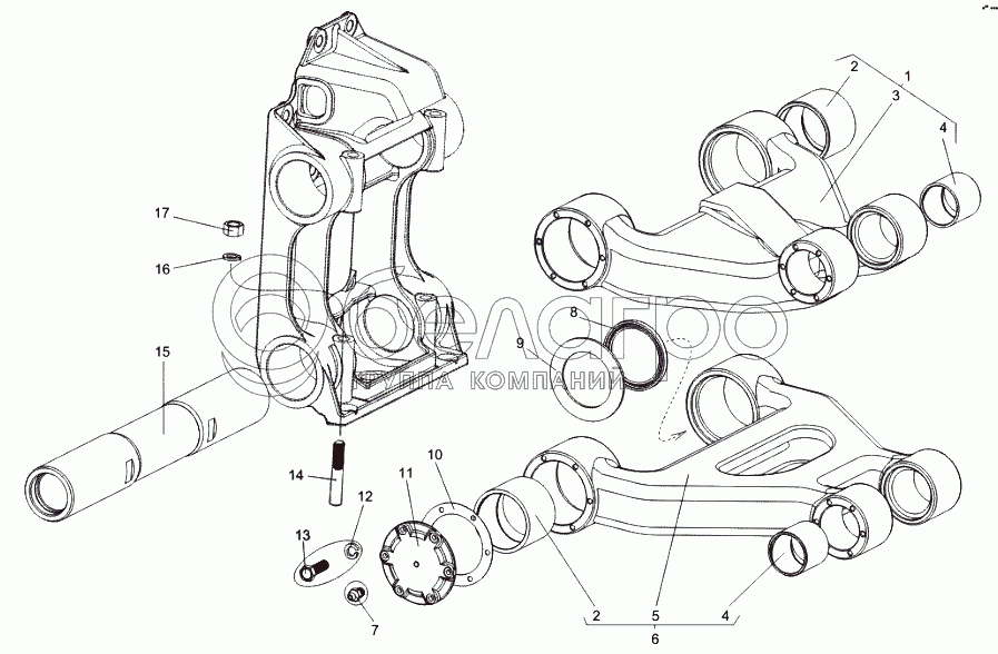 Каталог запасных частей к технике: МАЗ-74131. Установка задних рычагов подвески