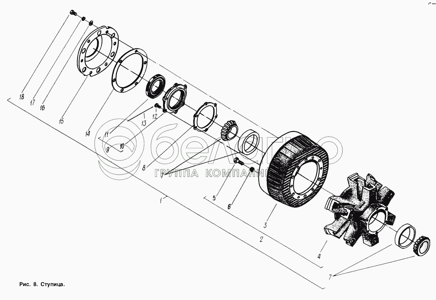 Каталог запасных частей к технике: МАЗ-83781. Ступица