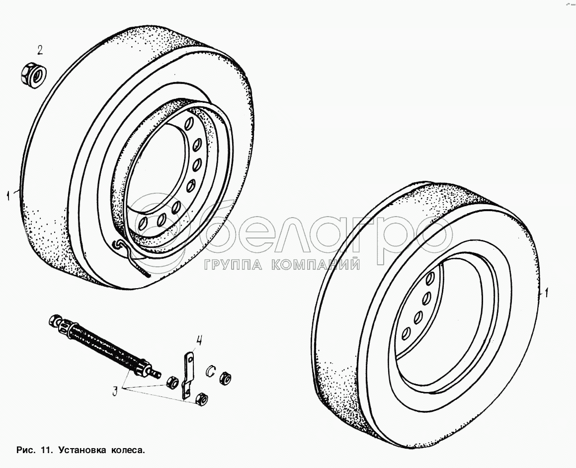 Каталог запасных частей к технике: МАЗ-83781. Установка колес