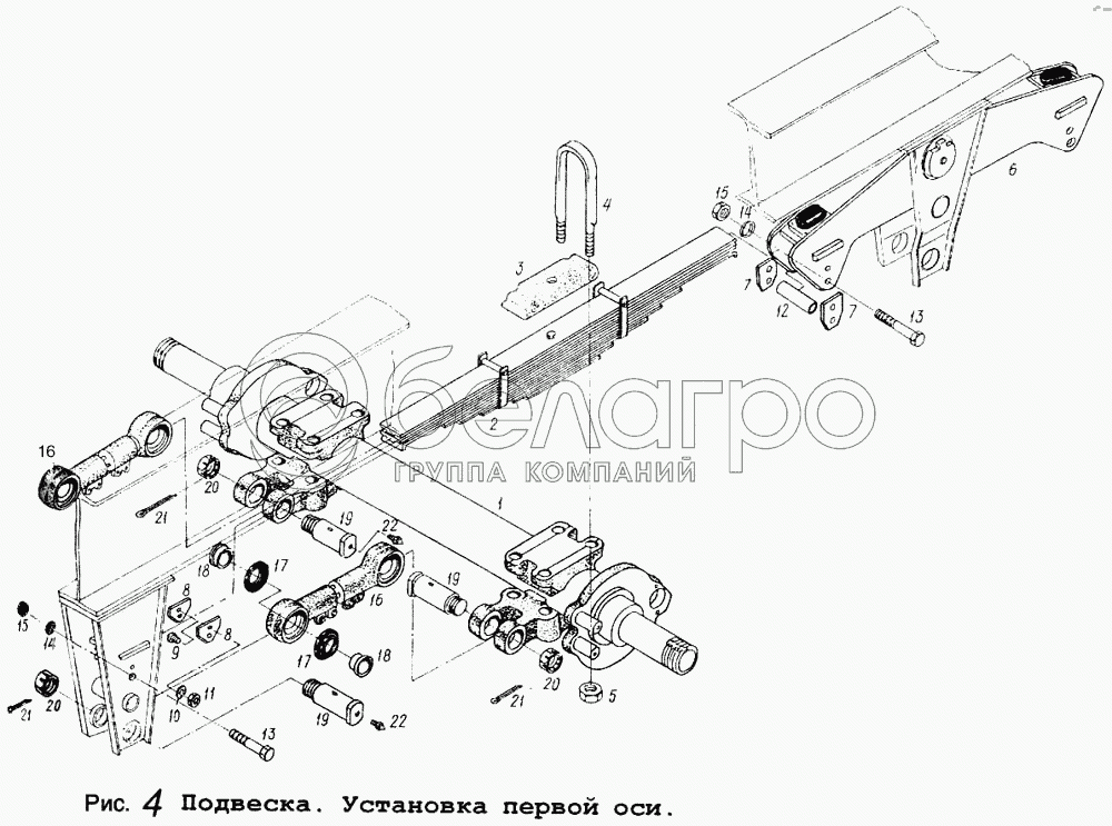 Каталог запасных частей к технике: МАЗ-9008. Подвеска. Установка первой оси