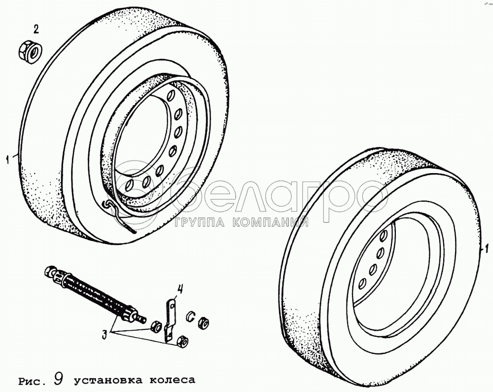 Каталог запасных частей к технике: МАЗ-9008. Установка колеса
