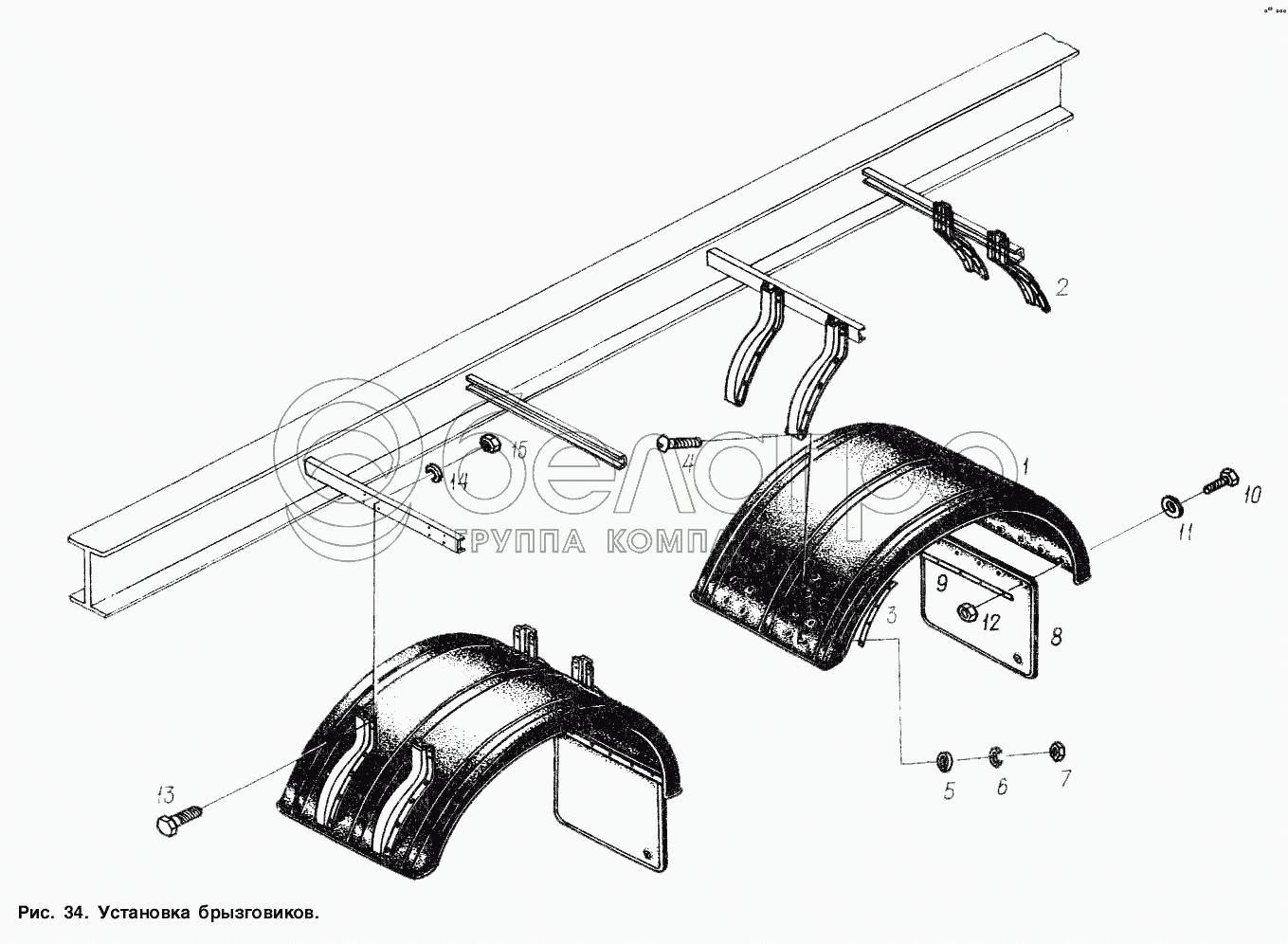 Каталог запасных частей к технике: МАЗ-93802. Установка брызговиков