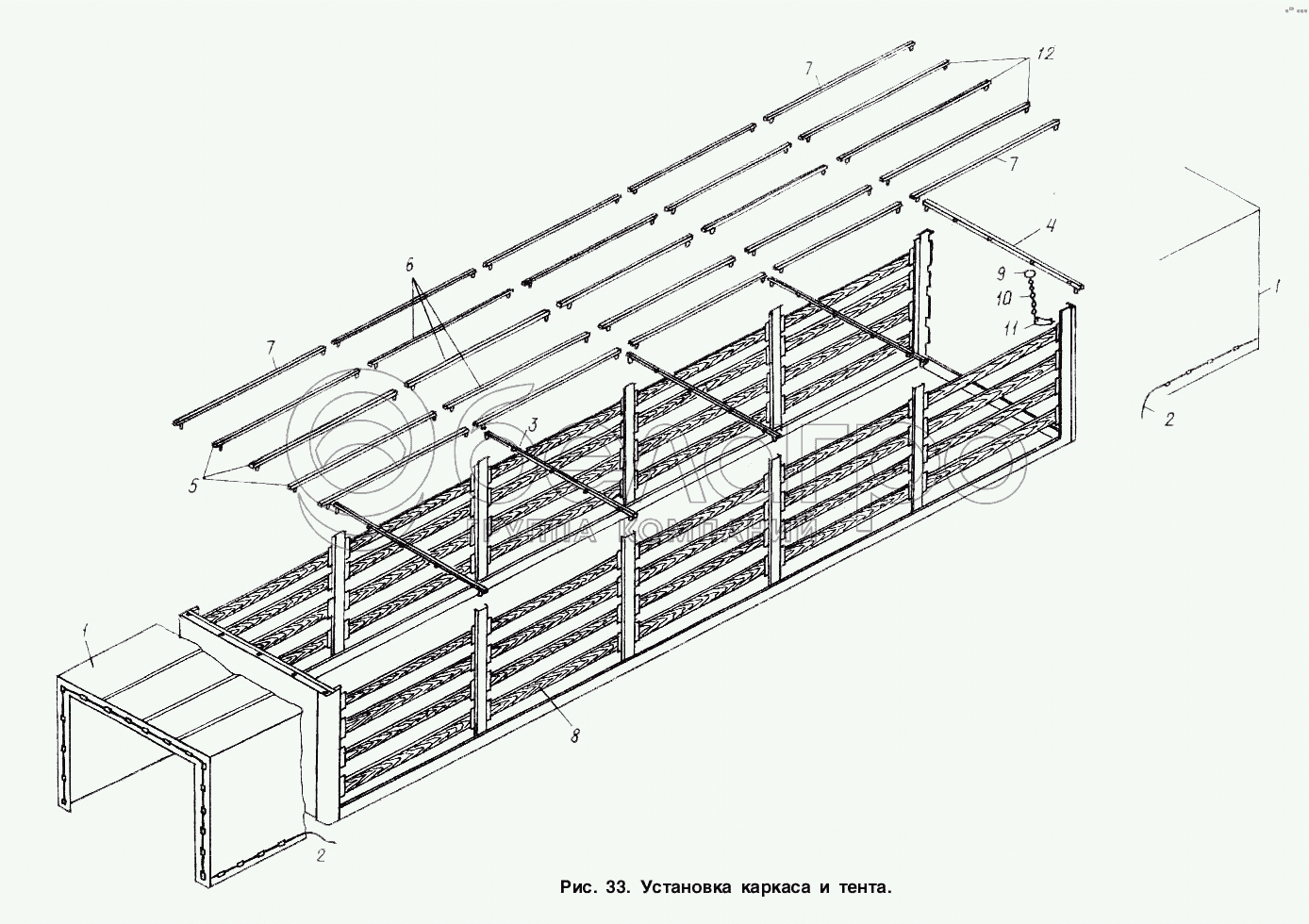 Каталог запасных частей к технике: МАЗ-93802. Установка каркаса и тента