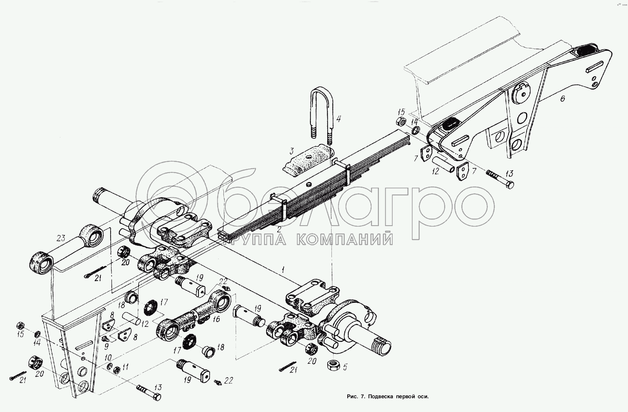 Каталог запасных частей к технике: МАЗ-938662. Подвеска. Установка первой оси