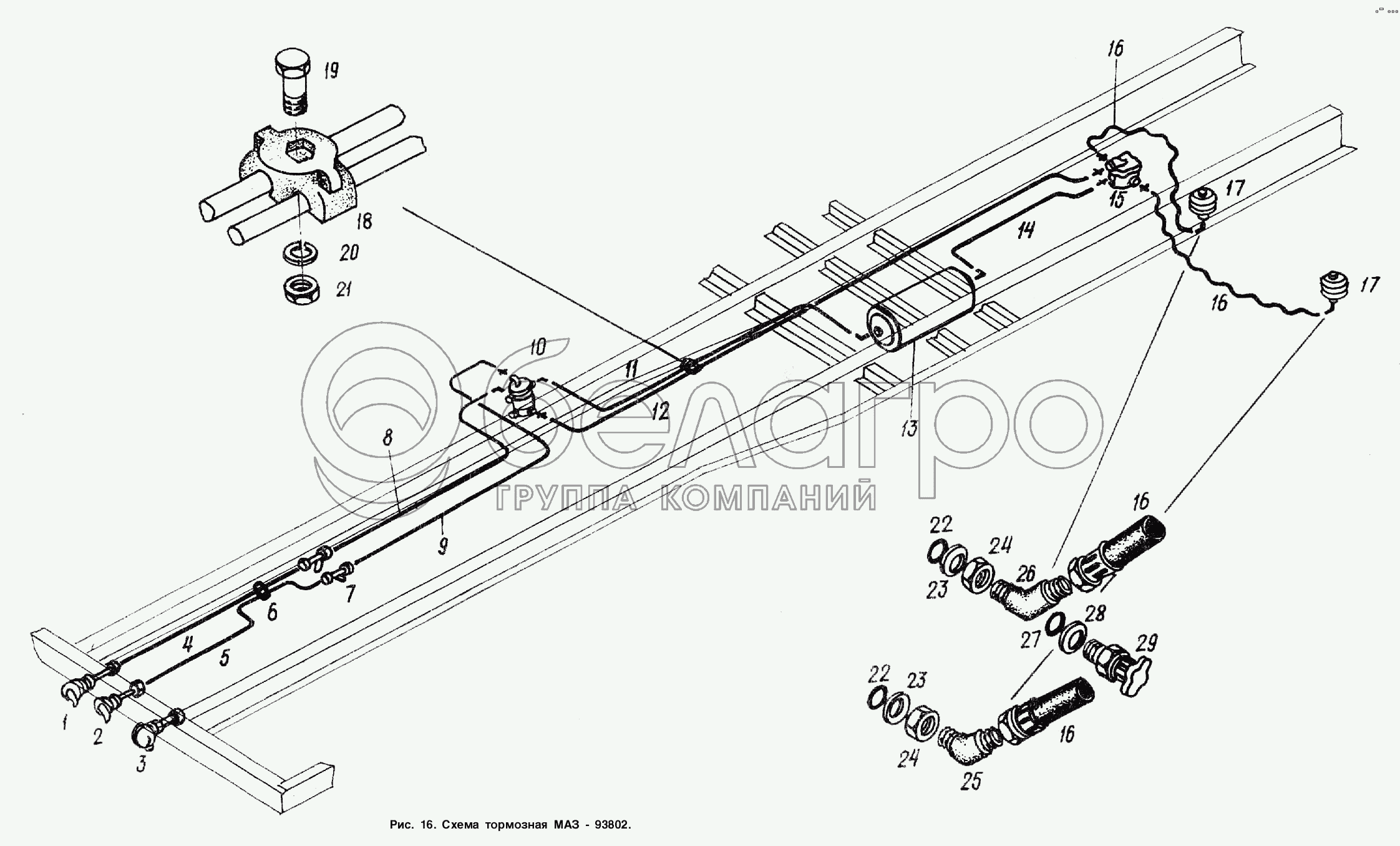 Каталог запасных частей к технике: МАЗ-93866. Схема тормозная МАЗ-93802