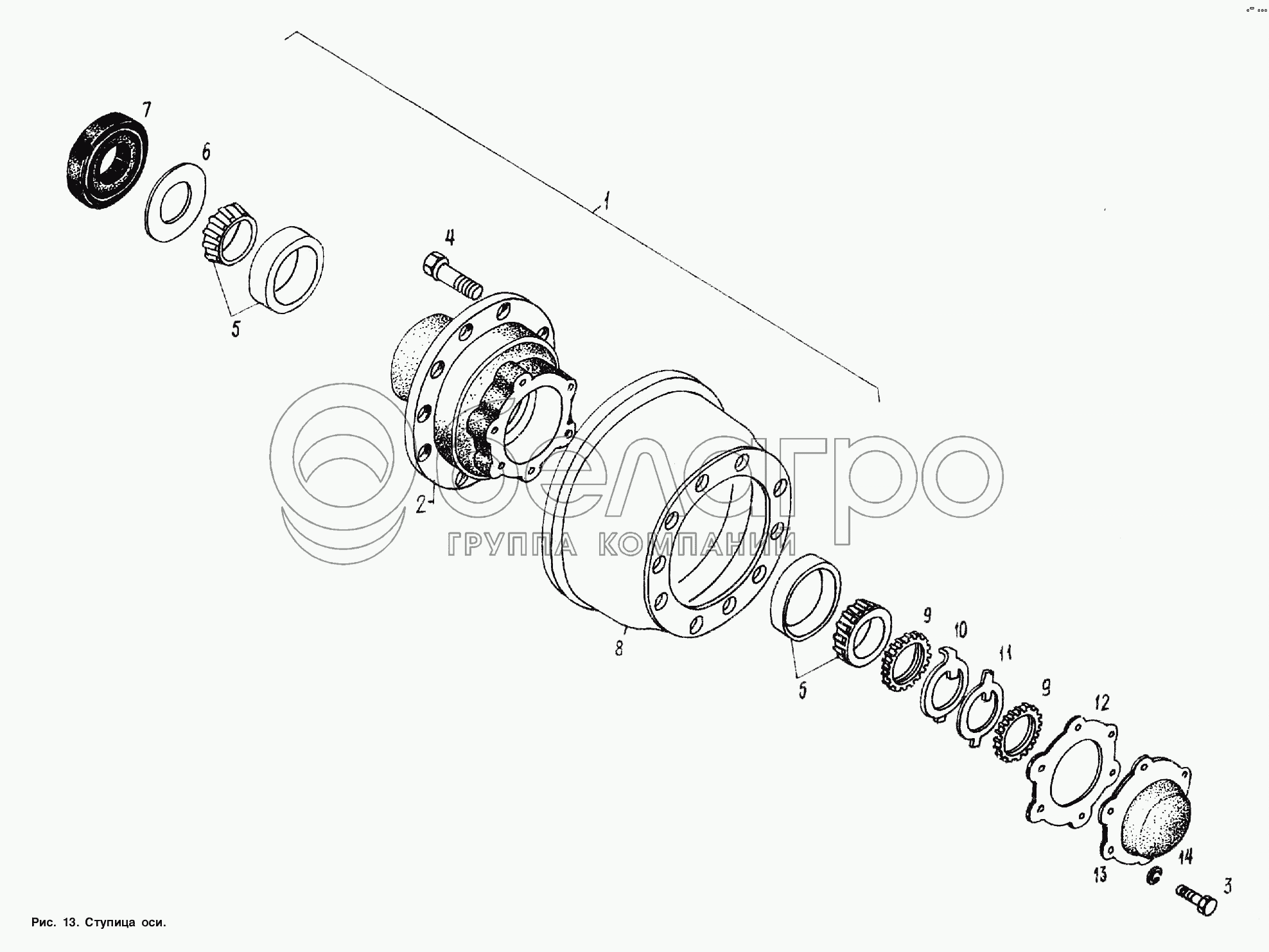 Каталог запасных частей к технике: МАЗ-93866. Ступица оси