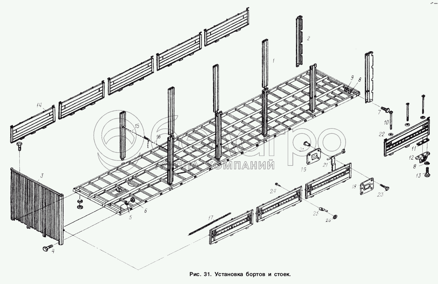 Каталог запасных частей к технике: МАЗ-93866. Установка бортов и стоек